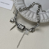 Silver Watch Choker: Gothic Necklace with Charms and Functional Watch – Bold Style Statement
