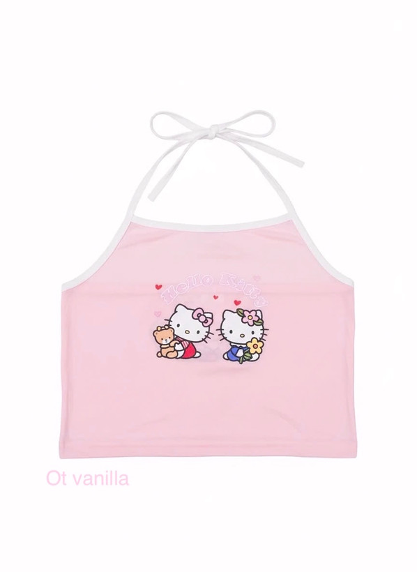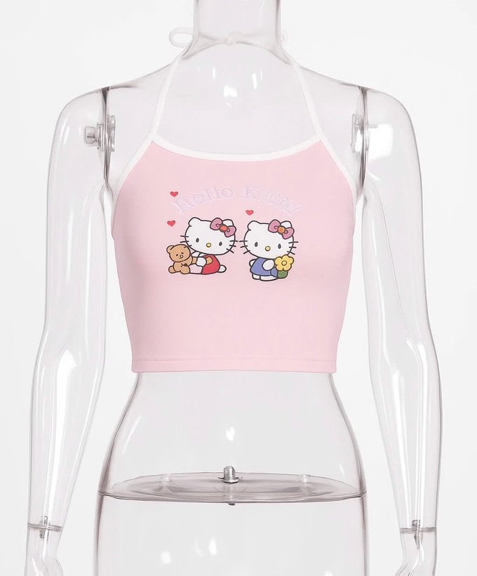 کراپ تاپ صورتی هلوکیتی دوتایی سانریو