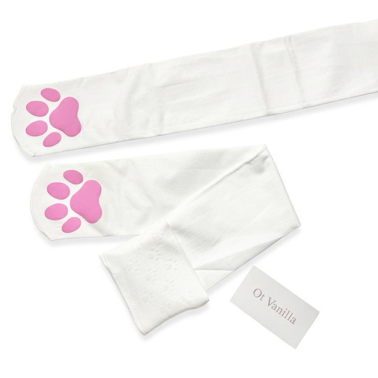 جوراب سفید بالای زانو فانتزی پنجه گربه ای ( سیلیکون تخت)