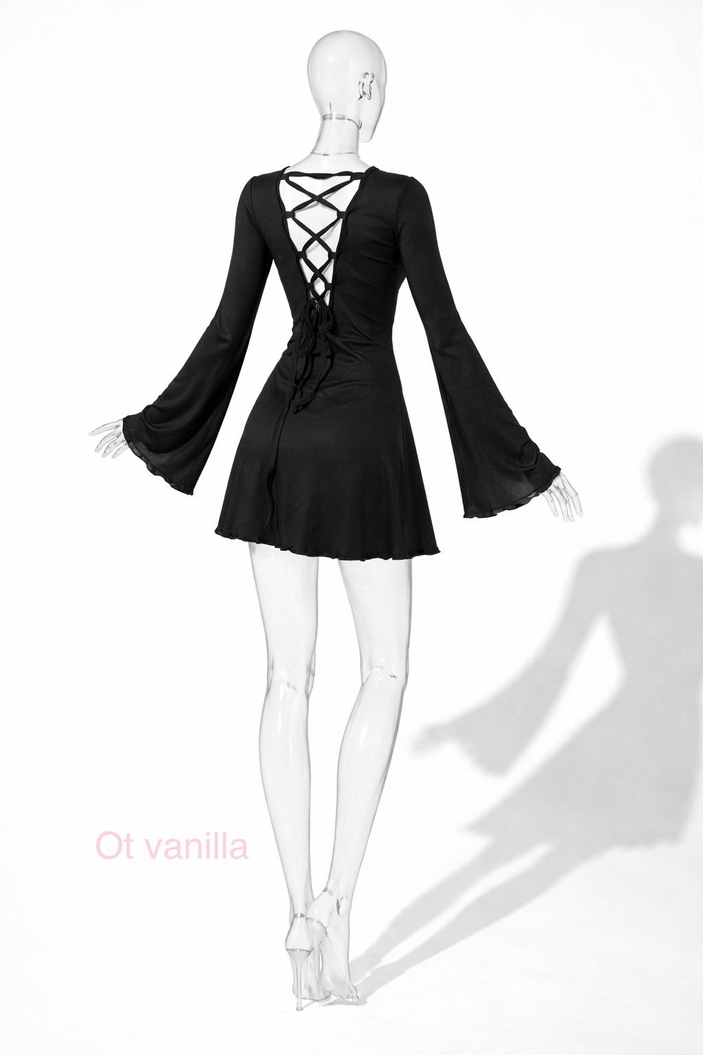 پیراهن زنانه مشکی کوتاه آستین زنگوله ای پشت بندی مدل فریا Freya